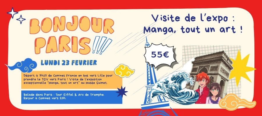 Direction Paris pour la visite de l’exposition exceptionnelle « Manga, tout un art ! » au Musée National des Arts Asiatiques suivie d’une balade dans la capitale Française.